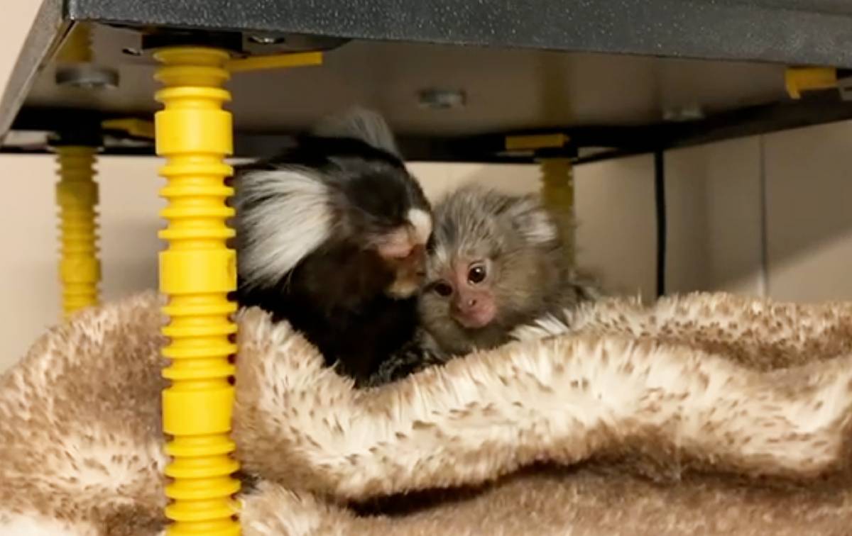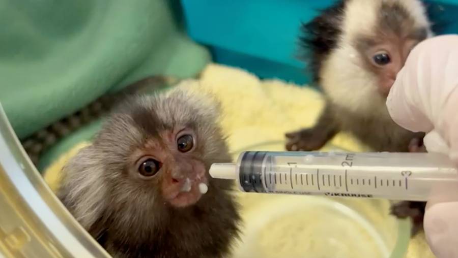 Tenían pocas semanas de vida cuando los titís comunes Giuli y Ari, y el tití cabeciblanco Miche, fueron encontrados sin sus madres en una jaula durante un control policial en Italia en mayo de 2023. El veterinario que los atendió, en seguida comprobó que los animales estaban en muy mal estado y viajó de urgencia a nuestro centro de rescate de AAP en Almere sin dudarlo.