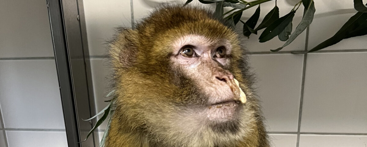 Izzy fue rescatada el pasado otoño, de un particular en Alemania. Estaba sola, se crió sin el amparo de su madre, en una pequeña jaula en el patio trasero de una típica casa de madera. Después de un ataque a sus dueños, decidieron traerla a las instalaciones de AAP. Aquí nos dimos cuenta en seguida de que algo iba mal en su alimentación. Con cada bocado que Izzy comía, una parte de la comida volvía a salir por la nariz y sin llegar a su estómago, lo que explicaba que Izzy estuviera tan delgada.