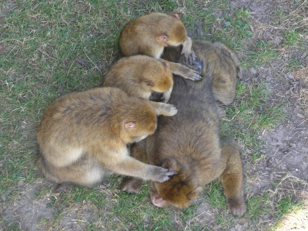 Macacos de Berbería durante una sesión de acicalamiento.