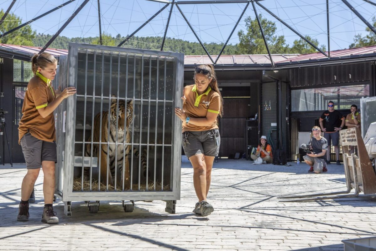 En estos momentos está en curso un transporte animal de grandes proporciones: cinco tigres están siendo transferidos desde el centro de rescate de AAP Primadomus en Villena, Alicante, hasta el zoo inglés de la Isla de Wight en el Canal de la Mancha. Este largo viaje será afortunadamente el último de un largo periplo; antes de ser rescatados por AAP, los tigres habían formado parte de un show circense.