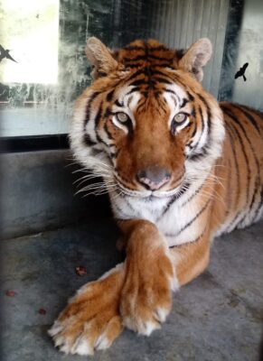 Patou y Diva son dos hembras de mediana edad. Indy es la mayor, con casi 20 años, y un problema congénito en la pata derecha que le hace arrastrar una severa cojera. Su dueño las utilizaba en anuncios, eventos, películas y programas de televisión. Si el guion precisaba de un tigre herido, ahí estaba Indy con su paso renqueante, previo unte en salsa de tomate, para darle más realismo a la escena.