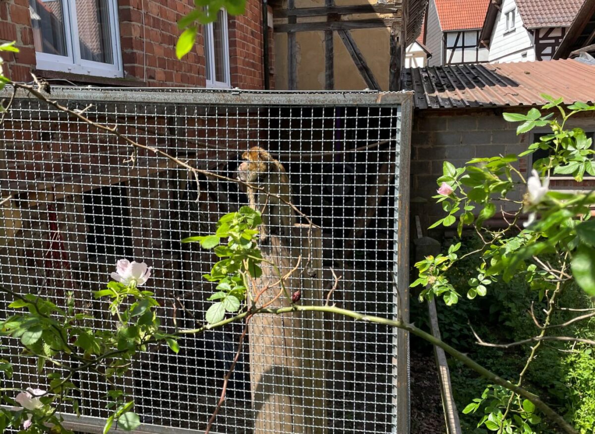 El pasado verano recibimos una llamada desde la organización por los derechos de los animales PETA Alemania. De forma anónima les habían informado sobre un primate que se encontraba en el jardín de alguien en el estado federado de Hesse. Uno de los trabajadores de PETA se acercó a revisar y se encontró con una hembra de macaco de Berbería, primate que se encuentra en peligro de extinción, sola y atada con una correa dentro de una pequeña jaula. Desde AAP nos ofrecimos a su acogida y en este momento comenzó la lucha por sacarla de esa terrible situación…