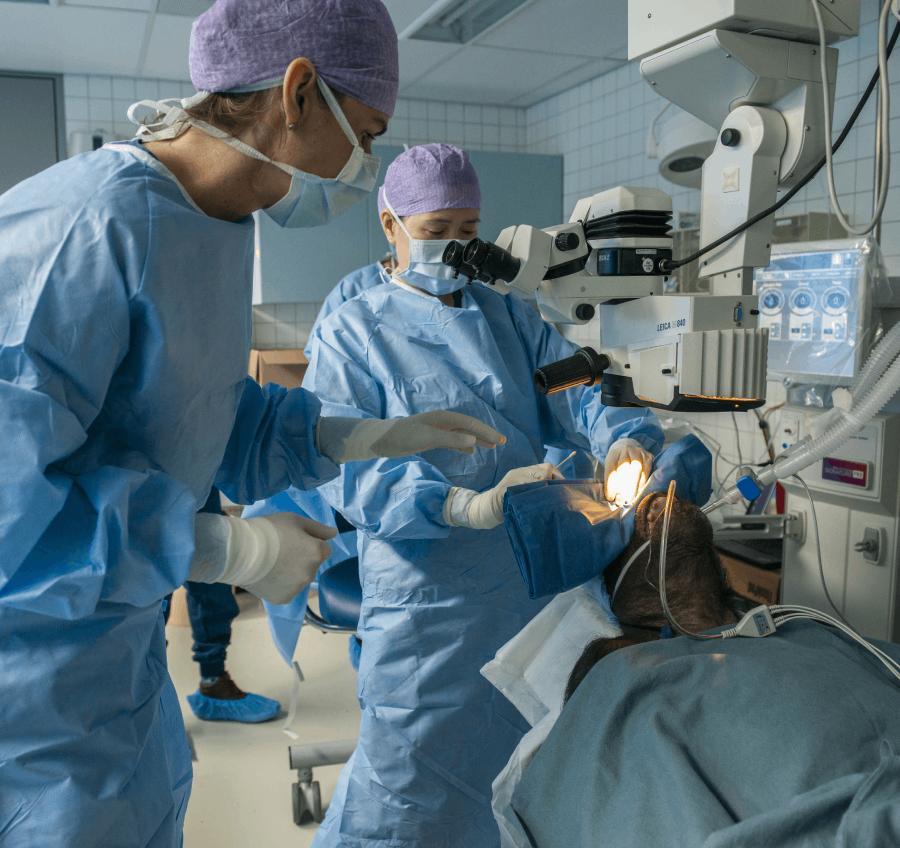 La operación se realizó el domingo 23 de mayo de 2021 en el Edificio de Chimpancés de AAP en Almere y duró un total de 2,5 horas. Al finalizar Hester van Bolhuis comentó que la operación había sido muy emocionante para todos, había varios motivos: «Para los oftalmólogos era la primera vez que operaban a un primate. También la operación era difícil, porque las cataratas en el ojo derecho eran particularmente severas»…. Afortunadamente todo ha salido muy bien y hemos podido recuperar la vista de Fiffy además, insertando una lente intraocular para ver de cerca en el ojo izquierdo y en el derecho otra para ver de lejos. Estamos muy agradecidos por toda la ayuda recibida y la plena disposición para devolverle la vista a Fiffy.