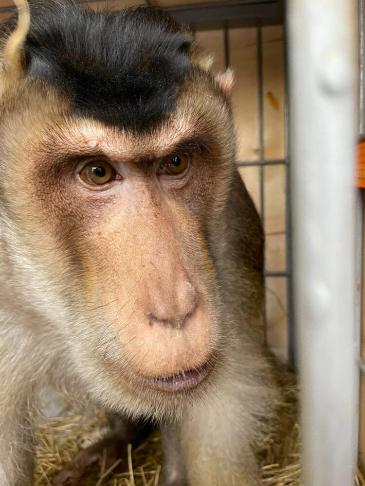 La semana pasada un macaco de cola de cerdo (Macaca nemestrina) emprendió su viaje desde la devastada Ucrania hasta Alicante. El primate, llamado Tomac, tiene unos 20 años y ha sido obligado a actuar en espectáculos circenses durante muchos años.