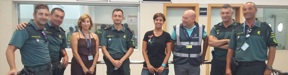 Pilar Jornet, directora de AAP Primadomus, ha acudido a las Comandancias de la Guardia Civil de Algeciras y Tarifa para facilitar información práctica sobre el manejo de primates en casos de confiscación. La formación, que comenzó el pasado viernes 19 de agosto en Gerona, ha sido impartida en los principales puntos fronterizos del país, y terminará el jueves día 25 en Irún (San Sebastián). En algunos de estos talleres se contó además con personal de la Subdelegación del Gobierno, el Puesto de Inspección Fronterizo (PIF) y Aduanas.