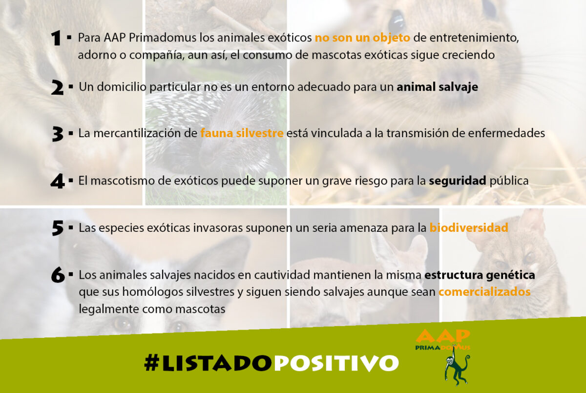 Tal y como señala Marta Merchán, directora de AAP Primadomus: “El tráfico, tanto legal como ilegal, de fauna exótica atenta contra el bienestar animal. Gran parte de los animales rescatados y rehabilitados en nuestro centro de Villena, Alicante, provienen del mascotismo”. A su vez ha invitado a recapacitar sobre la moda de comprar animales salvajes como animales de compañía, práctica en la que el afán de posesión y consumo parece prevalecer sobre el deseo de protección y respeto hacia los animales. Desde AAP constatan así mismo que la adquisición de estas especies suele ser el resultado de la falta de información a la hora de elegir un animal de compañía adecuado, lo que en muchas ocasiones deriva en situaciones dramáticas para animales y propietarios.