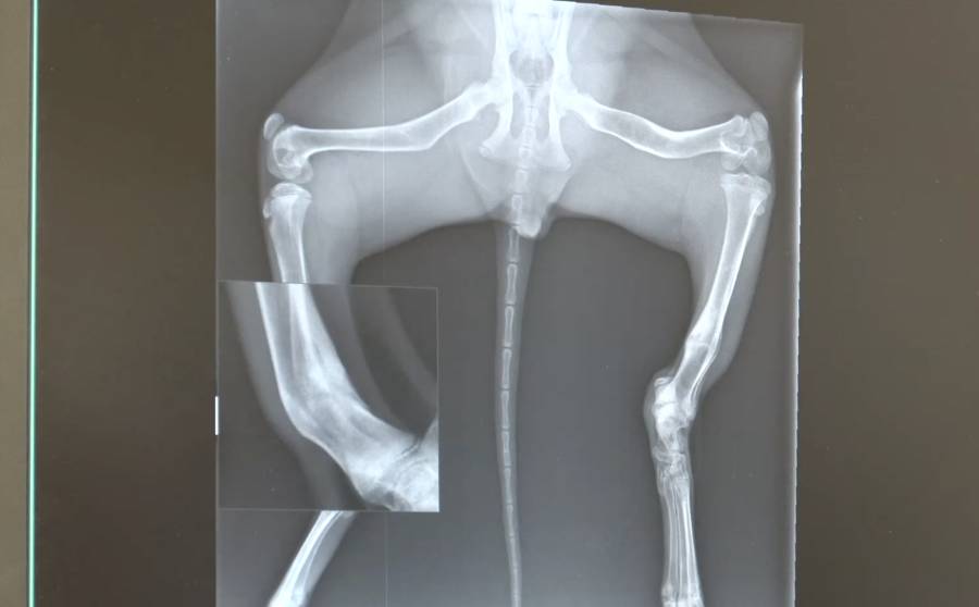 Radiografía de uno de los servales rescatados por AAP que presenta fracturas debido a los deficientes cuidados