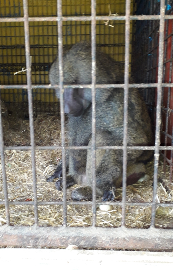 Kaki ha tenido que esperar demasiado para su rescate. En 2014 conocimos de su existencia por una llamada telefónica de una mujer que había visto babuinos y otros animales salvajes en un circo. Estaba muy preocupada pues era evidente que no estaban bien: entre los animales había incluso una cría que había estado muerta durante, al menos, una semana. Desafortunadamente, nunca nos llegaron las fotos y videos prometidos y sin evidencias de negligencia en su cuidado, no pudimos hacer nada por los primates pues el circo los tenía de forma legal.