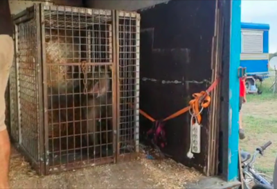 Hasta marzo de este año. Uno de nuestros contactos en Francia nos informó sobre un babuino de 13 años solitario en un circo francés: era Kaki. El propietario del circo, gravemente enfermo, se había deshecho del resto de animales en los últimos años, entre ellos la leona Savannah, decomisada en 2016 porque el siguiente circo que la tenía no tenía licencia. Savannah fue rescatada por AAP y pudimos darle un compañero: Gondar. Ambos pudieron ser reubicados en Maya Zoo recientemente tras recuperarse completamente de su pasado. ¡Queremos darle la oportunidad de una vida también a Kaki!