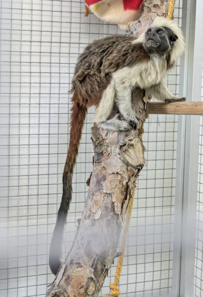 Una hembra de tamarino algodonoso (oedipomidas oedipus), ha sido encontrada suelta, muy delgada, y con muy mal aspecto físico, por un barrio de La Línea de la Concepción, en España. La Policía Local de la zona recibió un aviso el pasado 1 de octubre, tras haber mordido a un ciudadano. El SEPRONA se ha hecho cargo del animal, y finalmente ha sido depositado en las instalaciones de AAP en España el martes 8, donde ya se encuentra recuperándose en la cuarentena.