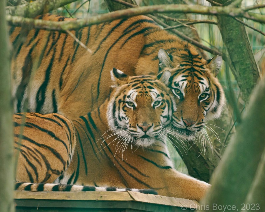 Los tigres Sanson y Mérida en el Zoo de Pistoia (Italia).