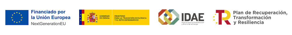 Este infraestructura de AAP ha sido realizada con el apoyo de del Ministerio para la Transición Ecológica y el Reto Demográfico (MITECO) a través del Instituto para la Diversificación y Ahorro de la Energía (IDAE) en el marco del Plan de Recuperación, Transformación y Resiliencia (PRTR), financiado por la Unión Europea – NextGenerationEU.