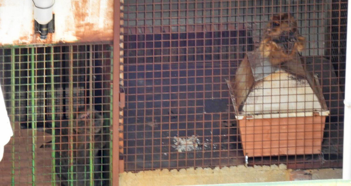 Su dueño los tenía encerrados en dos jaulas separadas, de reducidas dimensiones, en el patio de la casa expuestos a la luz solar continua y rodeados de sus propios excrementos.
