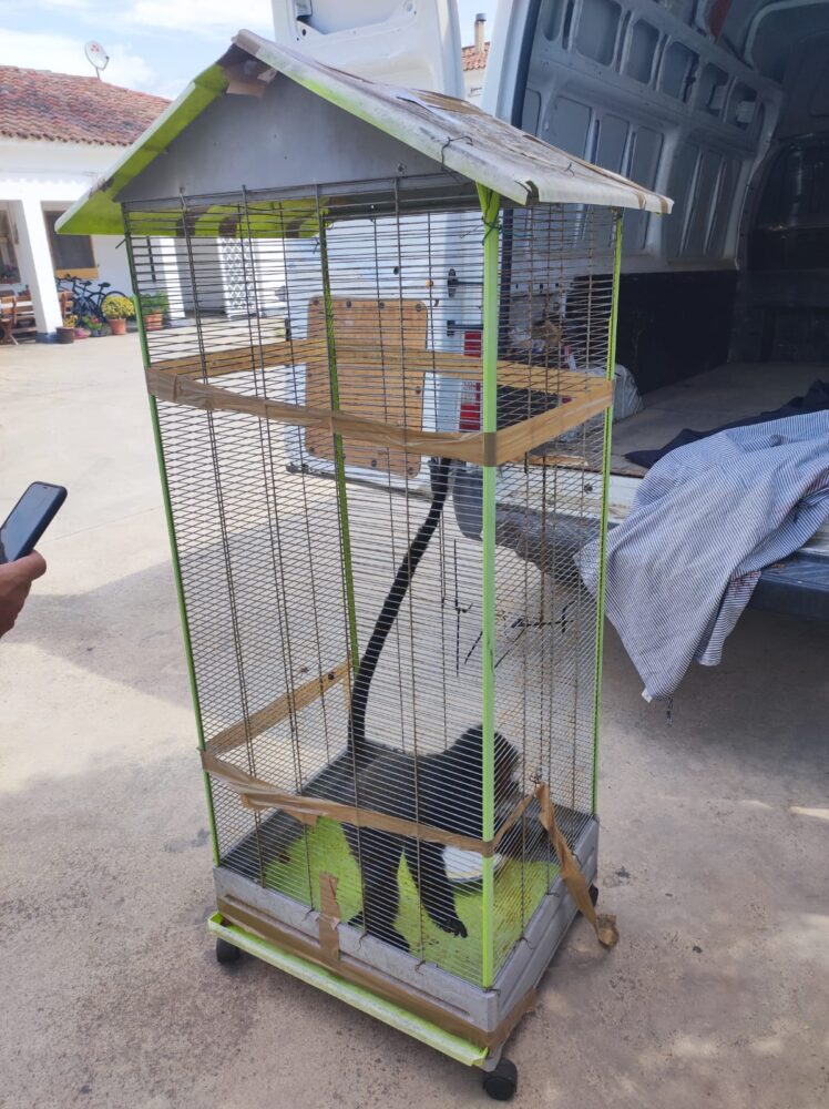 Desafortunadamente, esta rara especie de primate es una de las muchas especies exóticas que no son adecuadas como animales de compañía, pero que aún se puede mantener de forma privada siempre que se sigan los requerimientos administrativos pertinentes. Sin tener en cuenta que los primates son animales altamente sociales y con necesidades fisiológicas, etológicas y sociales tan complejas que son imposibles de garantizar en un entorno doméstico tal y como confirma la nota adjunta en la jaula de la hembra recientemente rescatada.
